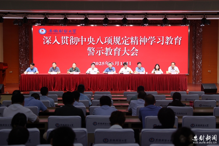 6月10日下午,学校在龙湖东校区求真楼报告厅召开深入贯彻中央八项规定精神学习教育警示教育大会,深入学习领会习近平总书记关于加强党的作风建设的重要论述和重要指示批示精神,贯彻落实中央部署和省委要求,通报违反中央八项规定精神典型案例,以案说德、以案说纪、以案说法、以案说责,对全校深化学习教育、强化作风建设、从严正风肃纪进行再动员、再部署,不断把作风建设引向深入。全体校领导,校党委委员、校纪委委员,全体处级干部,年轻干部、新提任干部、关键岗位干部参加会议。会议由校党委副书记张亚新主持。
