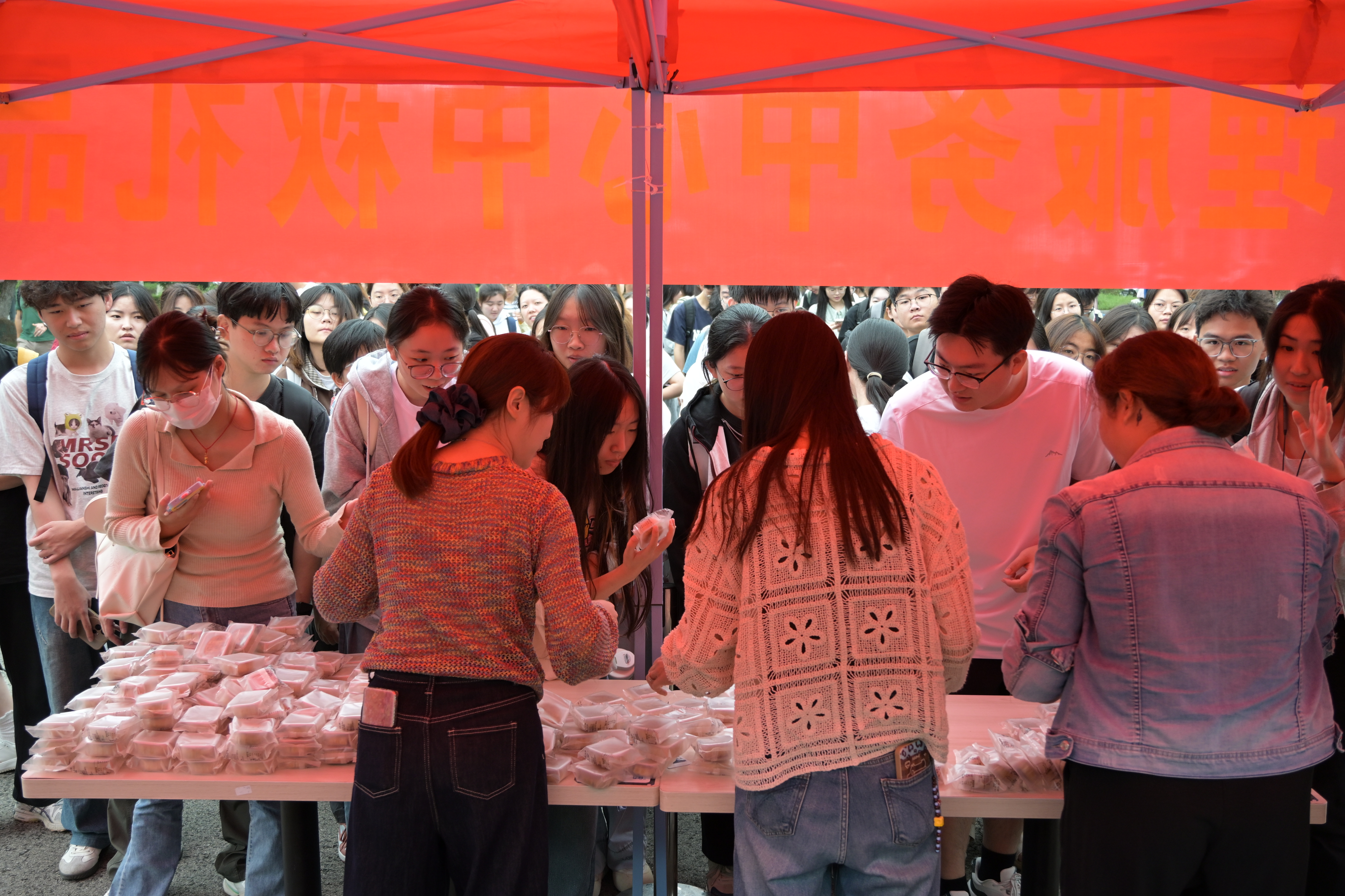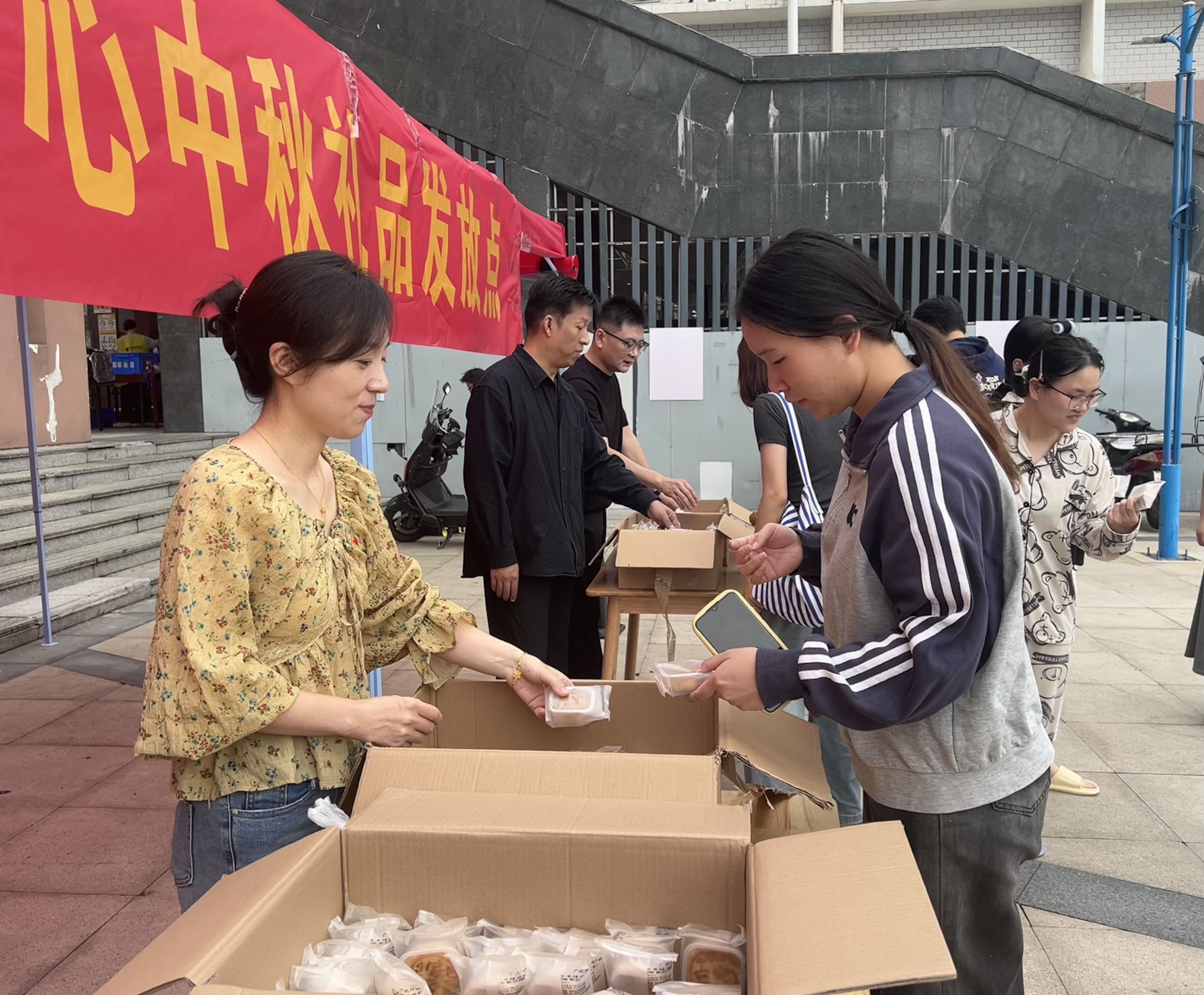 发放现场,前来领取月饼的同学排起了长队,节日的气氛弥漫在空气中,同学们领取月饼后,纷纷露出喜悦的笑容,互相讨论着月饼上的文印图案和丰富的口味选择。同学们的欢声笑语在热闹中交织成一幅温馨的校园画面,真切地体现出节日的喜庆气息,也让这个中秋佳节更增添了一份安财独有的仪式感。