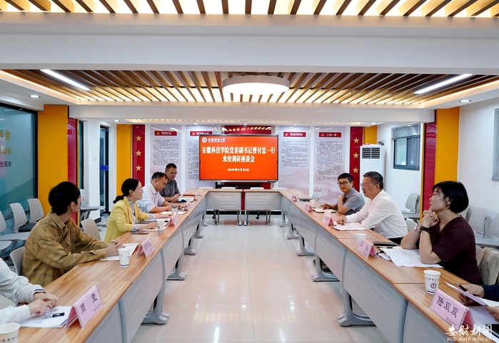 9月26日下午,安徽科技学院党委副书记曹付忠一行来我校调研交流,校党委常委、副校长陈莉出席并主持座谈会,学生处、校团委相关人员参加会议。
