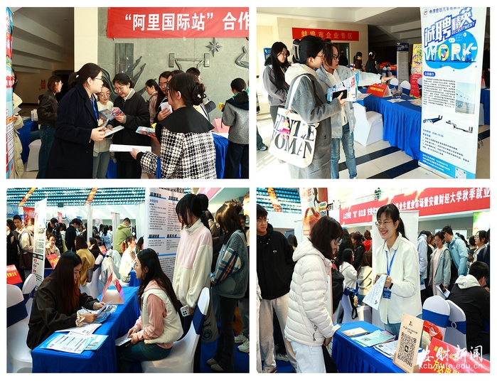10月22日上午,“人才兴皖 ‘就’在江淮”安徽省2026届财经类毕业生就业市场暨安徽财经大学秋季就业实习双选会在龙湖东校区体育馆顺利举行。作为安财“新经管”发展战略与安徽省“百万大学生兴皖”行动协同落地的关键实践,本次双选会汇聚195家优质用人单位,提供岗位6500余个,吸引3200余名学子参会,实现人才培养与区域发展的精准对接。
