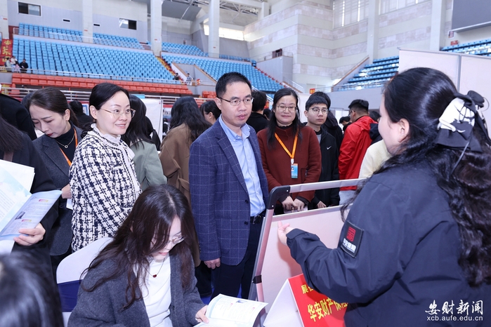 校党委书记、校长朱红军亲临现场指导,与企业代表交流用人需求,倾听学生求职困惑。他指出,双选会是“四位一体”高层次应用型人才培养体系的重要环节。未来将持续深化校地企协同,让更多安财“新经管”人才扎根江淮,为安徽高质量发展注入动能。校党委常委、副校长陈莉在双选会现场与用人单位、学生深入交流。她表示,此次双选会整合多方资源、细分专区,成效显著,未来学校会持续优化举措,为毕业生就业创造更好条件,助力学子高质量就业。